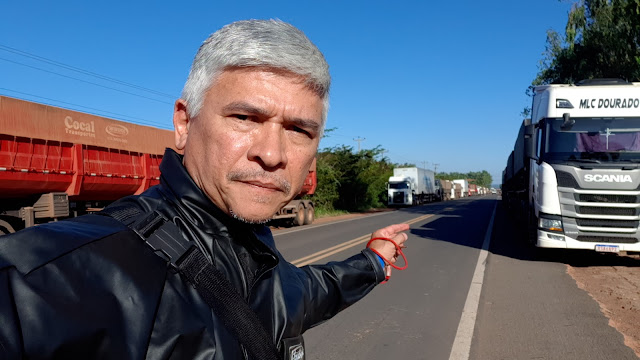 (Essa foto foi feita pelo senhor Pedro, um cidadão goiano que estava auxiliando no controle do trânsito na BR Belém - Brasília. Durante o tempo que ficamos esperando, conversamos bastante. Ele, um sujeito de paz e bem, muito comunicativo. Que Deus possa sempre abençoá-lo. Na volta, não olhei mais o senhor Pedro.)